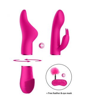 Este kit cuenta con una base inferior del clítoris vibrante suave, forrada con cerdas de silicona estimulantes en un lado y un anillo acanalado en el otro para obtener el máximo placer.